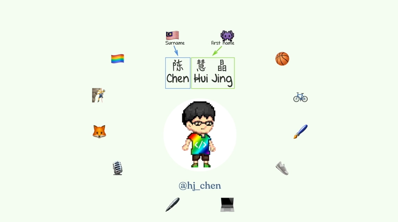 It is such a privilege to have the opportunity to speak to all of you at An Event Apart amongst this lineup of amazing speakers. CSS is one of my favorite things in the world, and with a title like our stylish future, you can bet that this talk will be heavy on the styles in Cascading Style Sheets. Anyhow, quick introduction, My name is Hui Jing and I’m simple enough that these images, paint a fairly comprehensive picture of who I am as a person. And I happen to be Chinese. And if you’re unfamiliar with Chinese names or family names come first, followed by our first names, and I’m currently a front-end developer at Shopify.