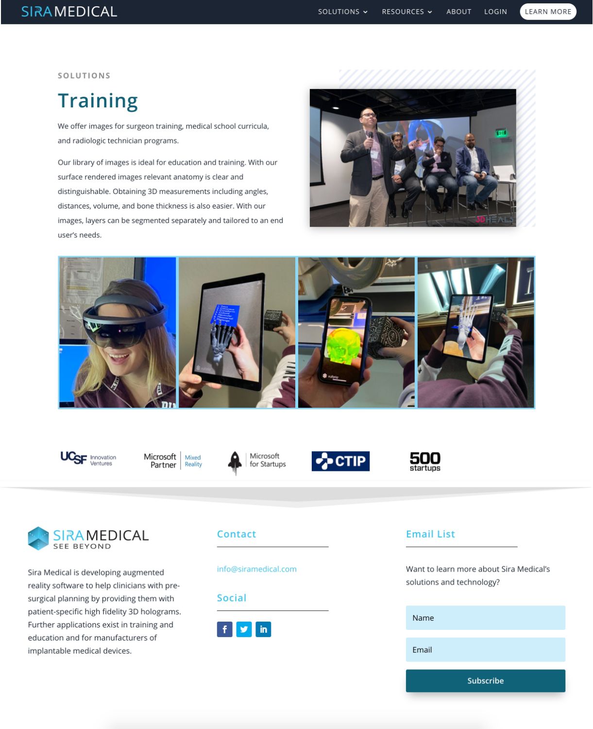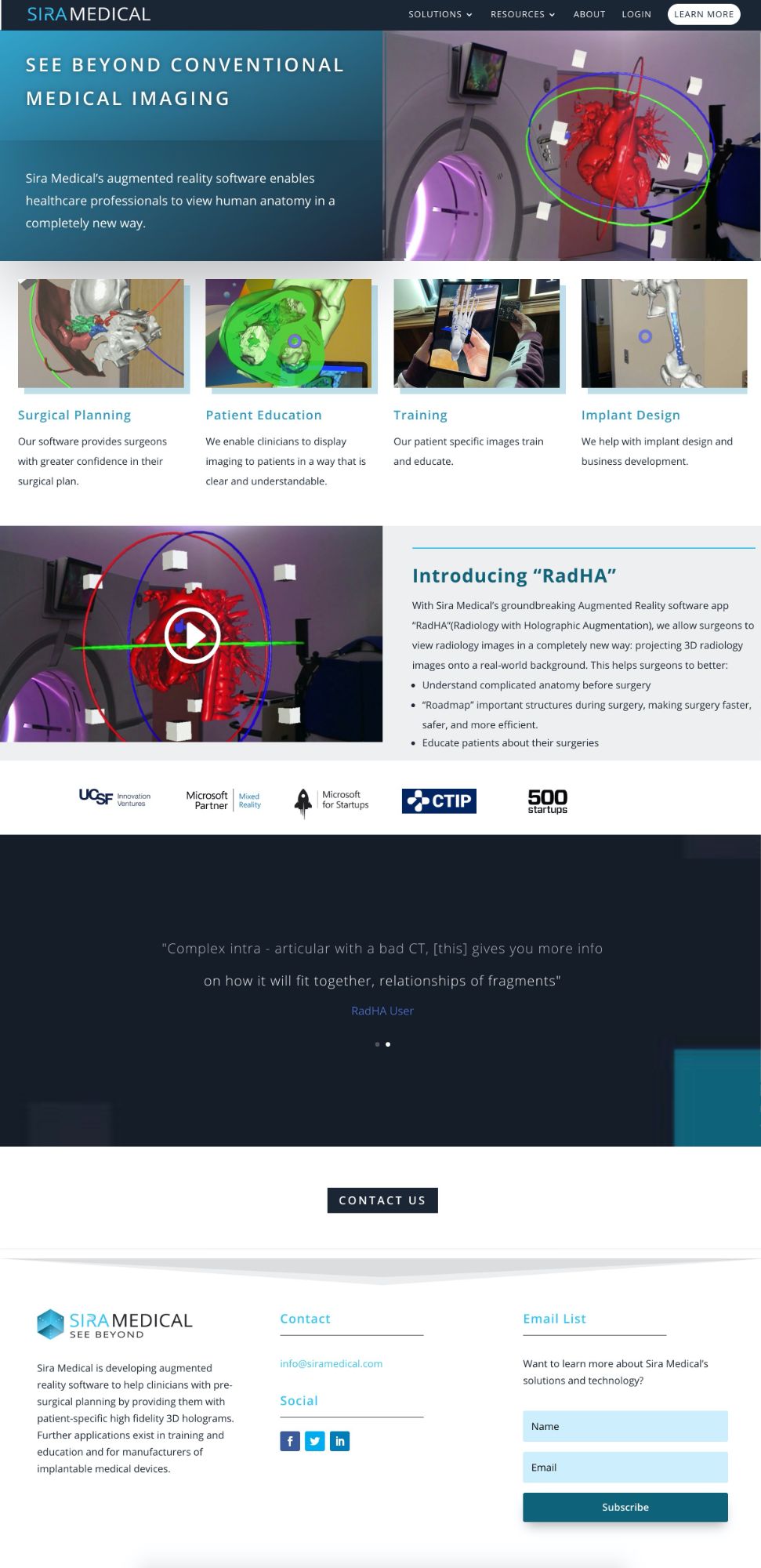 Sira Medical is changing the way health care professionals are approaching pre-surgical planning. Augmented reality is not only super cool, it’s also making surgery safer and more efficient which is a huge win for both professionals and patients alike. The partners at Sira Medical are making waves with futuristic software, but their first website was in need of an overhaul. We set out to assist in the rebranding and redesign needed to ensure they appeared modern, reputable, and established. With an updated logo and their target audience, message, and services now more clearly defined, the team is now better equipted to introduce their amazing software to the medical community around them